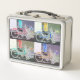 Das farbenfrohe Design von ZoeSPEAK auf dieser Lunch Box entstand aus Zoes Originalfoto eines Fahrrads, das vor einem Laden in Key West, Florida, geparkt wurde. Die Kleidung aus dem Laden hängt an der offenen Tür hinter dem Fahrrad. Das Foto wird in vier Farbtönen durchgeführt, Rot, Blau, Grün, Bike und Gelb, mit den entsprechenden Kleidungsfarben. Die Unterkünfte sind in gedämpften Tönen in Lila- und Olivgrau gehalten, der Hintergrund ist schwarz und Marmor.