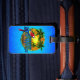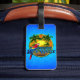 Key West Florida, die südlichste Stadt in den Vereinigten Staaten. setzen Sie Sonnenuntergangmalerei mit Palmen, rundem Bambusrahmen und einem bunten Papageien auf den Strand.