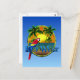 Das West-Strandbild mit Palmen, einem runden Bambusrahmen und einem farbenfrohen Papagei.