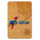 Ein farbenfroher Ara Papagei auf einem Key West Schild mit einem Hintergrund einer Vintagen nautischen Karte von Key West.