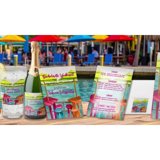 Pop die Blase und feiern die Braut zu sein mit diesen lebendigen Champagner-Labels! Diese Bar mit ihrem fröhlichen Design, ihren hellgrünen Schirmen und ihren lebhaften Orange- und Rosatönen sind perfekt geeignet, um Ihre Champagner- oder Schaumweinflaschen zu personalisieren. Sie fügen Ihrem Junggeselinnen-Abschied eine lustige, tropische Touch hinzu, die jeden Toast mit der Brautkommando mit dem Flair der Insel funkeln lässt.
