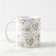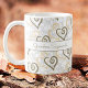 Dieses lustige Design zeichnet sich durch zwei miteinander verbundene Herzmuster aus. Das obere größere Muster hat ein khaki-braunes Herz und hinter dem schwarz umrissene Herzen sind schwarz mit Vorlagentext auf beiden Seiten des Griffs verbunden. Wählen Sie aus einer Vielzahl von Tasse-Stilen, um Ihren Geschmack.