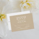 Einfache RSVP Karte für Hochzeiten und besondere Veranstaltungen in khaki Farbe zusammen mit Ihrem Veranstaltungsdatum in weißer Schrift. Passen Sie Ihre Karte an, indem Sie das Datumsfeld mit Ihrem eigenen Ereignisdatum bearbeiten. Wählen Sie Ihren Papierstil aus.