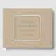 Solide khaki Farbe, einfaches Hochzeitsgast-Buch mit stilisierten Folienprint in einem quadratischen Rahmen, der den Namen der Braut und des Bräutigams zusammen mit dem Hochzeitsdatum in Ihrer Wahl der Farbfolie. Hier in Silberfolie gedruckt. Wählen Sie Ihren Gastbuchstil aus.