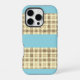 Khaki tan Creme Gingham Blue Stripe iPhone 16 Fall Hülle