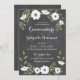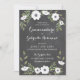 5 x 7 blumengeschmückte Quinceanera Einladung. Anemone Blume in Schwarz/Weiß, auf einem Chalkboard-Hintergrund. Personalisierbar.
