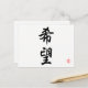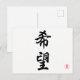 Japanische Schriftzeichen, die "Hoffnung" bedeuten, mit roter Briefmarke des Designers