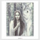 Indianerin Kickapoo Indianerin Brujah mit ihrem weißen Wolf vertraut. Original Digital Art Sticker Meine Familie stammt aus dem indischen Kickapoo-Stamm und das ist es, was mich inspiriert hat, diese Kunst zu erschaffen.
