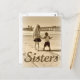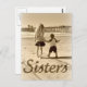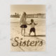 Zwei Mädchen stehen am Strand. Ein niedliches Bild von Schwestern, um sich dauerhaft Liebe zu zeigen.