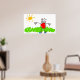 Niedlicher Cartoon kinderartig zeichn eines in einem Gras stehenden Stabes an einem Sommertag.