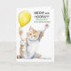 This cartoon tabby cat is ready to send birthday wishes to any little girl or boy who is turning six. Holding a big balloon and doing it's best hooray look, all you have to do is add the child's name to the front and send your message off.