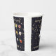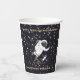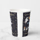 Farbenfrohe Weltraum-Thema Kinder Geburtstagsparty Paper Cups für den aufstrebenden Astronauten mit einer Faszination für die Planeten, Sonnensystem, Raketenschiffe und alles da draußen im Universum. Einfache Anpassung des Monogrammnamens und Änderung oder Löschen von Typografie-Details. Imitate goldene Glitzer Sterne und Glitzern ergänzen die astrale Magie. Zusätzliche Party-Produkte und Einladungskarten sind in diesem Design verfügbar, um ein koordiniertes Party-Thema zu erstellen.