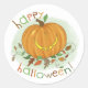 Kinder jeden Alters werden diese skurrile Illustration eines lächelnden Halloweenkürbchens genießen, das "Happy Halloween" im Schriftart eines Kindes liest.