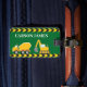 Coole Gepäckmarke für ein Kind, das gelbe Baufahrzeuge in Gelb und Grün Liebe. Fun Fahrzeug Geschenk für einen kleinen Jungen, der Lieben Autos und LKWs. Passen Sie den Namen Ihres Kindes unter dem Warnband an. Ein Betonmischer und ein Bagger mit Backhoe.