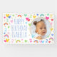 Feiern Sie mit diesem niedlichen und farbenfrohen Party-Banner den Zauber, zwei zu drehen! Eine lustige Vorlage personalisiert mit dem Foto und Namen Ihres Kindes. Farbenfrohe Regenbögen, Herzen, Sterne und das überaus wichtige Geburtstagszeitalter werden während des gesamten Designs wiederholt. Ideal, um das 1., 2., 3., 4. oder 5. Frühjahr zu feiern, und eine schöne Ergänzung zu Ihrem Party Dekoration! Die Farben sind hell und pastellfarben, mit Rosa, Rot, Gelb, Grün, Blau und Weiß. Bestellen Sie die Online-Kollektion für beliebtere Produktideen für Kindergeburtstage!