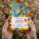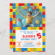 Mit diesem Kids Gebäude Block Geburtstagseinladung zum Spaß! Dieses Design mit einer lebhaften Blockgrenze, fröhlichen Ballons und einem erfreulichen Kind, das vor Freude hüpft, ist ideal für ein kreatives und abenteuerliches Party. Ideal für eine Themenfeier mit einem Gebäude, ist es vollständig anpassbar, um Ihren besonderen Tag unvergesslich zu machen!
