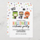 Halloween Party Einladung mit niedlichem frankenstein, Katze, Kürbiskostümen.