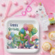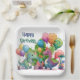 A Colorful Dinosaur Happy Birthday Square Paper Plate Of Balloons And Dinosaurs