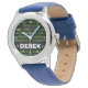 Kinderuhr aus Edelstahl mit blauem Lederarmband