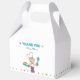 Featuring a charming cartoon chef holding a spatula and spoon, bright heart accents, and a bold “Thank You” message, this design is perfect for sending guests home with treats, small gifts, or party surprises.