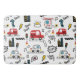 ,A playful, cartoon-style city pattern featuring buses, cars, helicopters, traffic lights, buildings, and fun doodle text like “Beep Beep,” “Wuz Up?” and “Go,” in bright red, yellow, blue, and black tones.