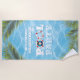 Unser Kinderbecken Party Strandtuch ist perfekt für Ihren nächsten Geburtstag oder Feiern. Es verfügt über einen praktischen Platz, um Ihr eigenes Foto hochzuladen und eine kurze Nachricht. Tropische Palmen hängen über einem glitzernden Hinterhofpool. Es ist Teil eines passenden Set mit Party-Dekor, das um den Swimmingpool und die Sommervillen herum gestaltet wurde.