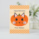 Eine orangefarbene Kürbiskatze Happy Halloween-Karte für einen Halloween-Kartenaustausch oder um Freunde, Familie, Schüler, etc. auszugeben. Die Vorderseite kann personalisiert sein und die Rückseite hat eine niedliche Halloween-Nachricht, die auch personalisiert sein kann. Eine niedliche Kürbiskatze Halloween-Karte für Kinder.