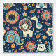 niedliche Grafik, die aus einer Mischung aus Paisley und Tieren besteht, perfekt für ein Kinderzimmer oder einen Kleiderschrank, aber für Erwachsene gut geeignet