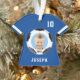 Kinder Sporty Blue Foto Soccer Jersey Ornament. Personalisieren Sie mit dem Foto, dem Namen und der Jersey-Nummer des Kindes, um einen Weihnachtskuchen zu erstellen, werden sie Liebe.