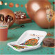 Zu Halloween-Teller für ein Halloween-Party mit einem großen Kürbis-Gnome-Zuhause und zwei Gnomen stehend auf beiden Seiten. Es gibt auch eine schwarze Katze und schwarze Spinnen. Es sagt "Happy Halloween" oben. Dieses Design ist auch in einer kompletten Party-Lieferkollektion enthalten, also schauen Sie sich die lustigen Artikel an.