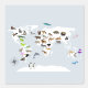 Eine schöne Abbildung einer Weltkarte mit Orten einheimischer Tiere auf der ganzen Welt. Ein ideales Design für jeden, der Bildungs-Illustrationen, Geografie, Tiere und Landkarten Lieben etc. Ein perfektes Design für Kinderzimmer-Babydekor, Kinderzimmer-Dekor, Kindergeschenkideen, Kindergeburtstagsthemen etc.