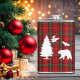Ein elegantes Design für den Winter mit rot, schwarz, grün tartan Hintergrund und Waldtieren und Baum!