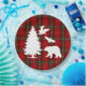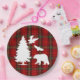 Ein elegantes Design für den Winter mit rot, schwarz, grün tartan Hintergrund und Waldtieren und Baum!
