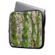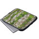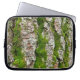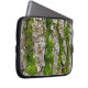 Lebhafte grüne Moos wachsen in senkrechten Grooves von verblasster Kiefernrinde. Das Makrofoto zeigt die abwechselnden Streifen von Rinde und Moos sowie die Textur jedes einzelnen. Die Rinde ist geschichtet, schuppig, mit feinen Farbabstufungen: grau, braun und sogar blassgrün. Das Moos besteht aus unzähligen kurzen feinen Haaren, als ob der Baum einige grüne Pelzlichter wollte. Digitales, Farbfoto. Copyright © 2011 Claire E. Skinner. Alle Rechte vorbehalten.