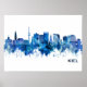 Blue Watercolor Skyline von Kiel, einer Hafenstadt an der Ostseeküste Deutschlands