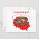 Schöne Polnische Karte mit rot-weißer Fahne Overlay und ein Haufen Kielbasa Wurst in der Mitte und Smacznego! über der Karte. Gutes Geschenk für jeden mit polnischen Wurzeln.
