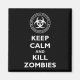 Funny "Keep Calm and Carry On" Parodie. Behalt Ruhe und töte Zombies! Klicken Sie auf "Anpassen" und dann auf "Bearbeiten", um den Hintergrund in eine beliebige Farbe zu ändern!