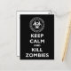 Funny "Keep Calm and Carry On" Parodie. Behalt Ruhe und töte Zombies! Klicken Sie auf "Anpassen" und dann auf "Bearbeiten", um den Hintergrund in eine beliebige Farbe zu ändern!