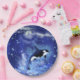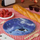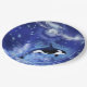 Killer Whale on Full Moon - Art Zeichn - Blau Pappteller