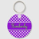 Niedlicher Schlüsselanhänger in kleinen weißen Punkten auf lila Hintergrund, auf dem Kimberly-Namen gedruckt ist.