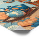 Kimono Kitty mit Tee Japanisch Orange Blue Poster