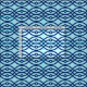 Kimono Print, dunkelmarineblau Muster auf einem helleisblauen Hintergrund - gemischte mediale Grafik inspiriert durch ein antik japanisches Kimono-Gewebe