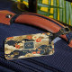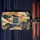 This luggage tab features a Japanese style print -- similar to patterns from kimonos -- with white, teal, tan, and orange on dark teal-- almost black. Your name monogram initial appears in gold text on a coordinated color block of dark blue teal, bordered in gold. This kimono style Asian print pillow makes a lovely accent for your home or a gift for a housewarming, or a friend or loved one.