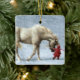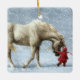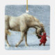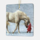 Kind, das ein Pferd im Schneeurlaub führt Keramikornament