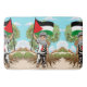 Niedlicher kleiner Junge aus Gaza, der einen Keffiyeh trägt und die palästinensische Flagge hält, Symbol der Freiheit und Unabhängigkeit des freien Palästina. Original Vector Grafik Illustration Copyright BluedarkArt The ChameleonArt.