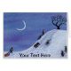 Eine winzige Aquarelllandschaft und eine farbenfrohe Abend-Landschaft, in der Kinder unter dem Halbmond schweben. Anstrichen für Art-O-Mat.