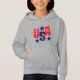Die Kids Pullover-Kapuze wird in der hellen Stahlfarbe mit einem patriotischen 4. Juli USA-Druck gezeigt, diese Kapuze ist aus hochwertigen Materialien und Handwerkskunst hergestellt. Passen Sie dieses Objekt an oder kaufen Sie, wie es ist. Bild