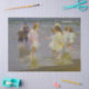 Dieses Design zeigt ein Gemälde des amerikanischen Impressionisten Edward Henry Potthast (1857-1927). Es zeigt eine Gruppe von Kindern, die im Wasser spazieren gehen, während die Wellen an einem Strand an der Ostküste der USA gegen die Füße stoßen. Die Szene könnte Brighton Beach in New York City sein, wo Potthast oft zum Malen kam. Die Jungs tragen Hosen und die Mädchen heben ihre Kleider auf, damit ihre Kleider nicht nass werden. Die Mädchen tragen Bogen im Haar. Es gibt auch eine Frau mit ihrem Sohn im Hintergrund. Jeder amüsiert sich am Strand in dieser Vintagen Szene des amerikanischen Lebens. Das Originalwerk wurde 1920 von E.H. Potthast gemalt.