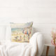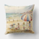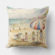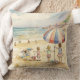 Dieses Kissen ist mit einem Bild von Sandy Beach, das Kinder auf einem Aquarellbild bewundert, geschmückt.