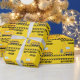 Cooler Sonderbagger Happy Birthday Packpapier für ein Kind, das gelbe Baufahrzeuge in schwarz und gelb Liebe. Fun Fahrzeug Geschenkpackung für einen kleinen Jungen, der Lieben Autos und LKWs. Passen Sie den Namen Ihres Kindes unter dem schwarz-gelben Warnband an.